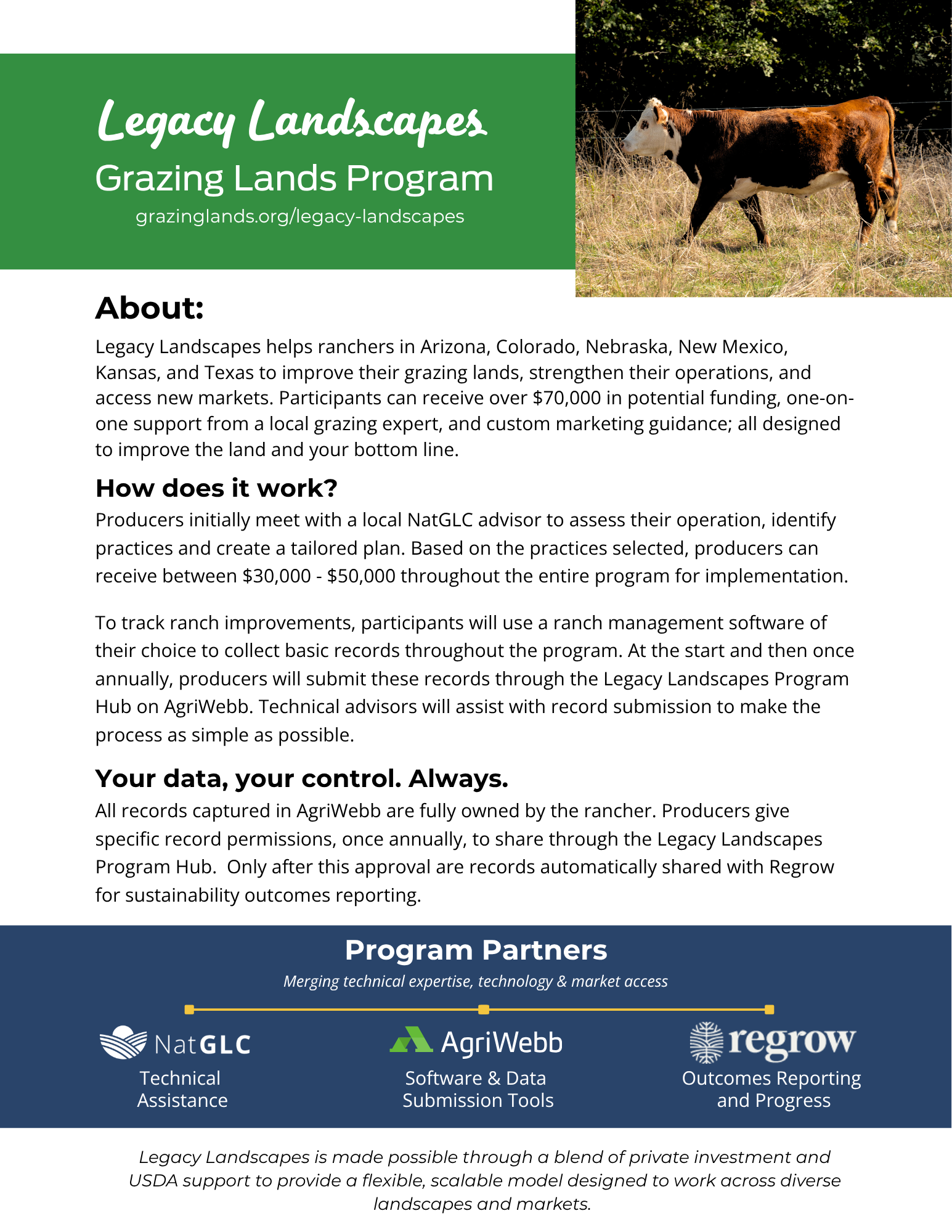 The Legacy Landscapes grazing program is a unique public-private partnership currently recruiting ranchers in seven states.